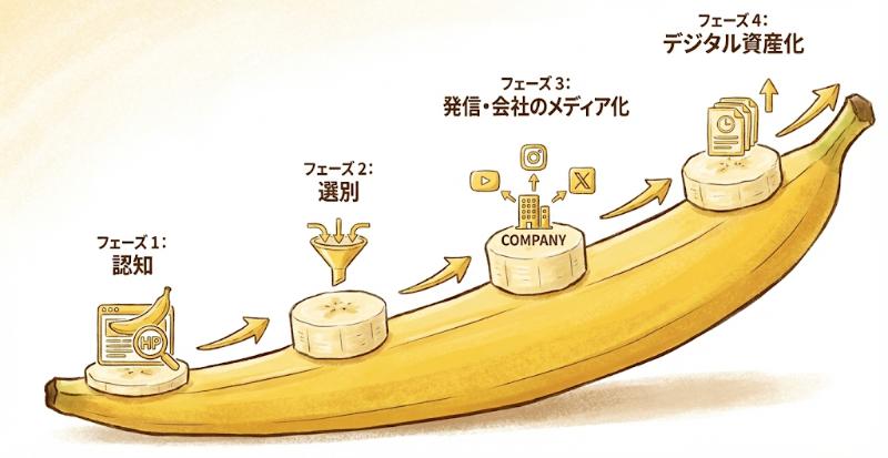 営業の流れを4つのフェーズで整理したのが、バナナ式営業構造です。